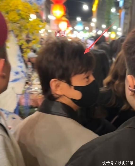 画面中的何老师未戴口罩,笑容灿烂,眼角的细纹清晰可见;而小凯则头戴帽子、口罩遮面,仅露出双眼,两人身旁没有任何随行人员。